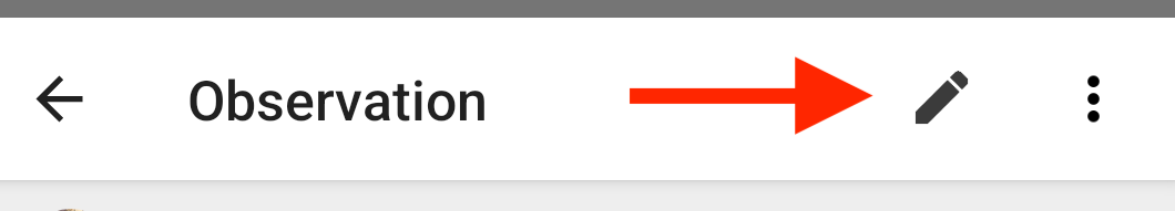 - Tap on the pencil icon in the upper right-hand corner of the screen to edit the observation.